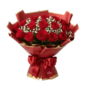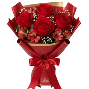 6 Rosas Vermelhas selecionadas e 3 galhos de lirios com 3 flores cada haste