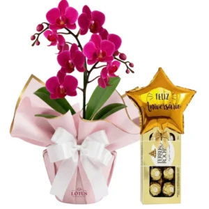 Orquídea Mimo e Balão Com Chocolate