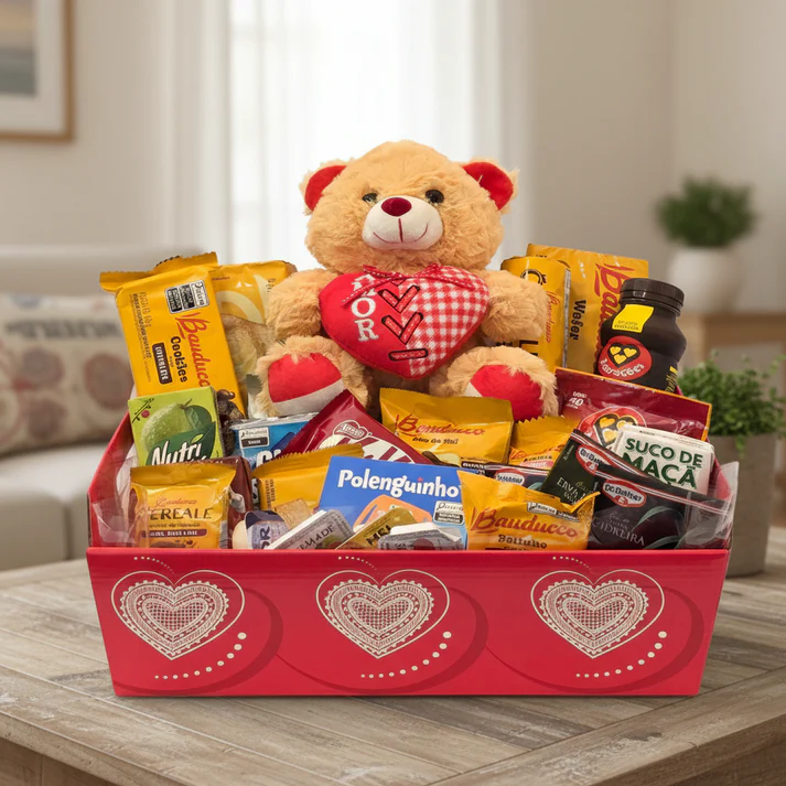 Cesta Café da Manhã Romântico com Ursinho Eu te Amo