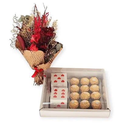 – 1 Buquê P com flores naturais desidratadas compondo a caixa.